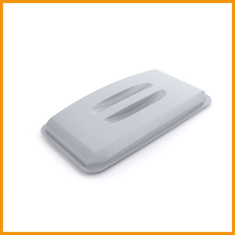 Suorakulmainen, uritetulla kahvalla varustettu kansi Durabin ECO -jäteastiaan. Tuote on elintarviketurvallinen.Mitat: 501 x 272 x 58 mm