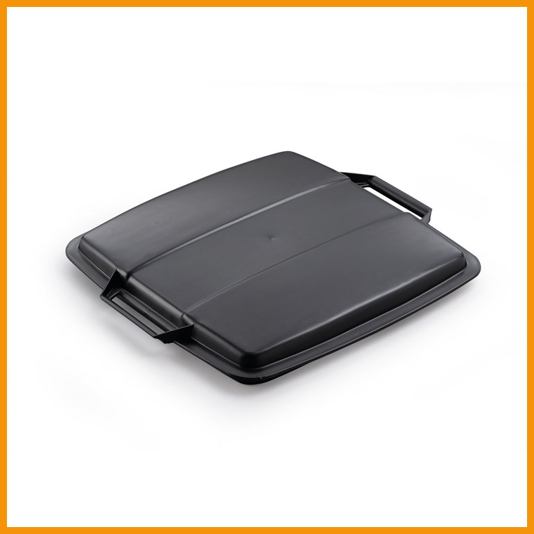 Suorakulmainen, kahdella kahvalla varustettu kansi Durabin ECO -jäteastiaan.Mitat: 507 x 470 x 60 mm