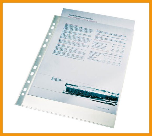 Esselten ylhäältä auki oleva kansiotasku on läpinäkyvä ja kirkaspintainen. Arkistokelpoisen taskun reunalista on yleisrei'itetty.Koko: A4