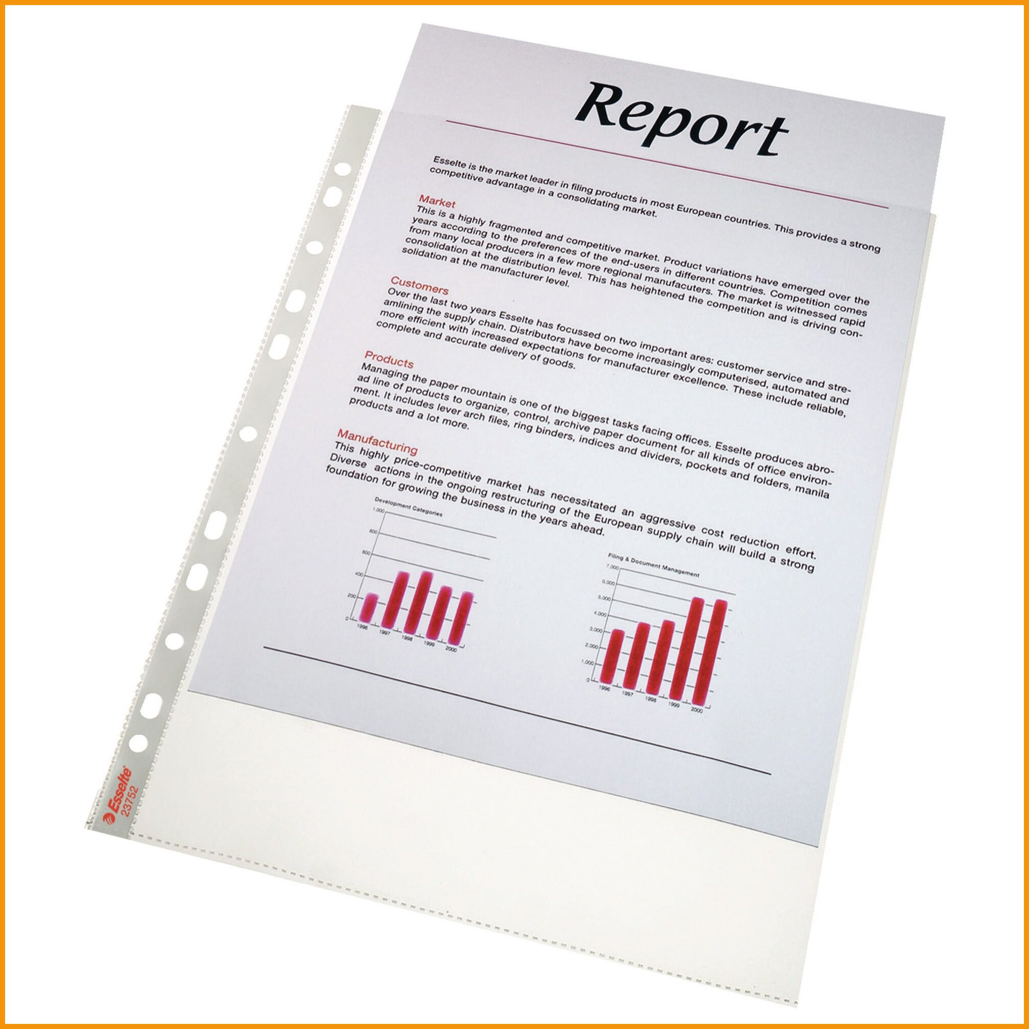 Esselte-kansiotasku suojaa asiakirjoja lialta ja kulumiselta. ylhäältä avonaiseen taskuun sujautat tärkeät dokumentit nopeasti ja vaivattomasti. laadukas, appelsiinipintainen kansiotasku on valmistettu 65 mikronin vahvuisesta polypropeenista. tasku on kierrätettävä.Kansiotaskut toimitetaan 100 kappaleen erissä.