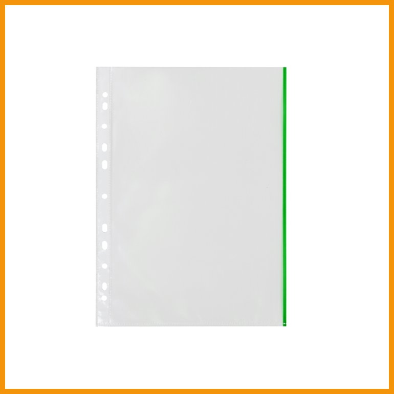 Q-CONNECTin ylhäältä auki oleva ja värillisellä reunuksella viimeistelty kansiotasku on läpinäkyvä, heijastamaton ja kirkaspintainen. Arkistokelpoisen taskun valkoisessa reunalistassa on yleisrei'itys.Koko: A4