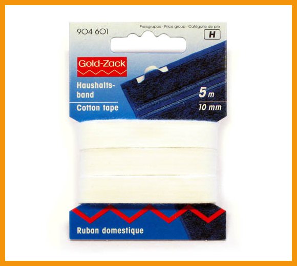 Leveys 10 mm. Rullassa 5 m. 100% puuvill aa.