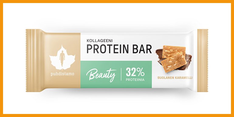 Puhdistamon Kollageeni Protein Bar Suolainen karamelli on täysin lisäaineeton proteiinipatukka, jossa on huikeat 32 % proteiinia. Patukan proteiini on peräisin erityisesti ihon hyvinvointia ylläpitävästä Verisol®-kollageenista. Terveys ja luonnollisuus eivät estä hyvää makua!Paino: 30 g.