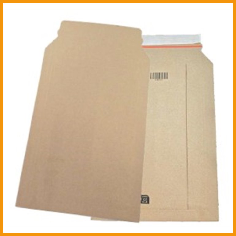Kartonkipussi ruskeasta aaltopahvista. Sopii hyvin kokonsa puolesta esim. julistekuoreksi. Kuoressa on tarrasuljenta.