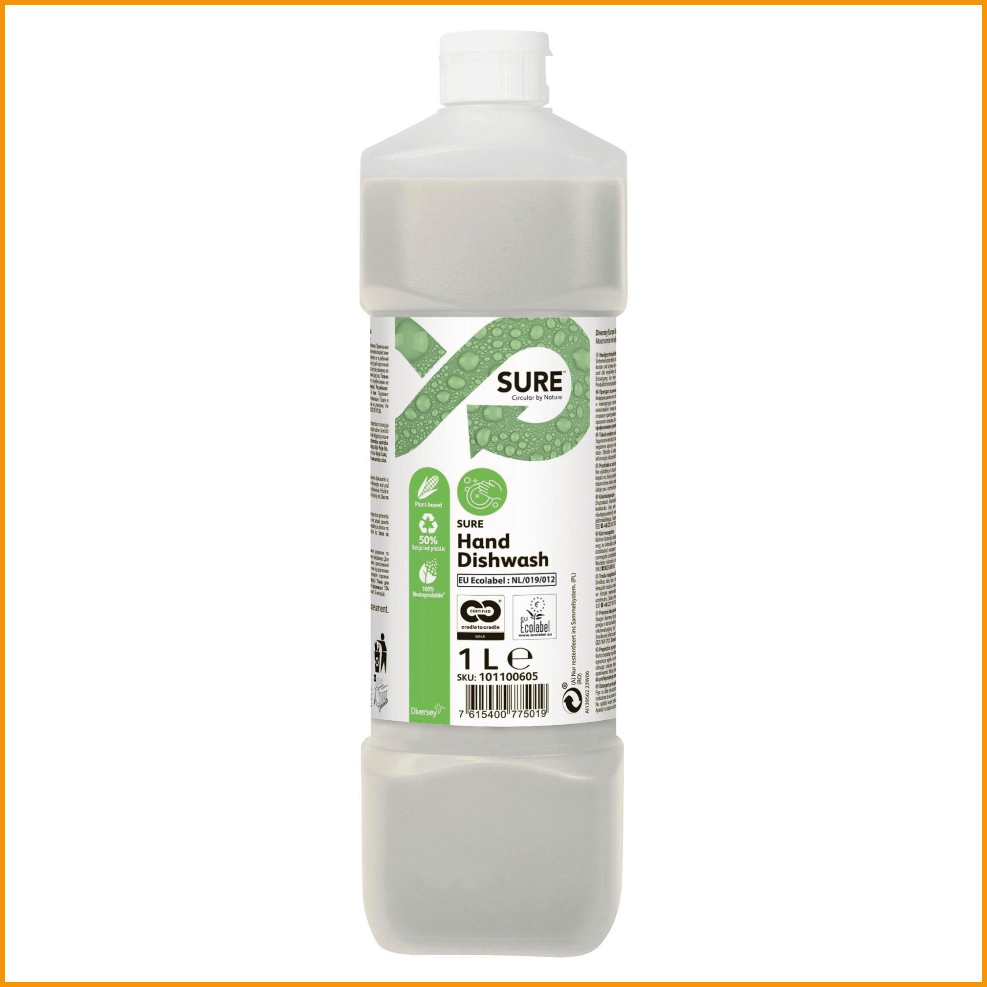SURE Käsiastianpesuaine on osa ainutlaatuista kasvipohjaista, 100% biohajoavaa ammattikäyttöön tarkoitettua tuotesarjaa. SURE Käsiastianpesuaine on tiivistetty astianpesuaine kaikenlaisten astioiden ja keittiövälineiden käsin suoritettavaan pesuun. Ympäristömerkitty (EU-kukka) Kaikenlaisten astioiden ja keittiövälineiden käsin suoritettavaan pesuun. Ei sisällä hajusteita tai väriaineita. Vähemmän vaahtoa, soveltuu myös astioiden liotukseen ennen astianpesukoneeseen laittoa. Ei sisällä käyttäjälle tai luonnolle vaarallisia luokituksia. Valmistettu uusiutuvista, luonnon omista raaka-aineista. 100 % biohajoava. Tiivistetty tuote on taloudellinen käytössä. Tunkeutuu rasvaan ja kiinni kuivuneeseen likaan. Huuhtoutuu helposti eikä jätä raitoja.Käsiastianpesuaine Sure hand dishwash 1l on hyvä tiskinpesuaine, jonka verkkokauppatilauksen toimitus perille kestää 1-2 päivää. Tiedäthän, että hinnaltaan yli 140 € verkkokauppatilaus toimitetaan aina ilmaiseksi! Meiltä voit tilata laskulla ja ilman rekisteröitymistä.
