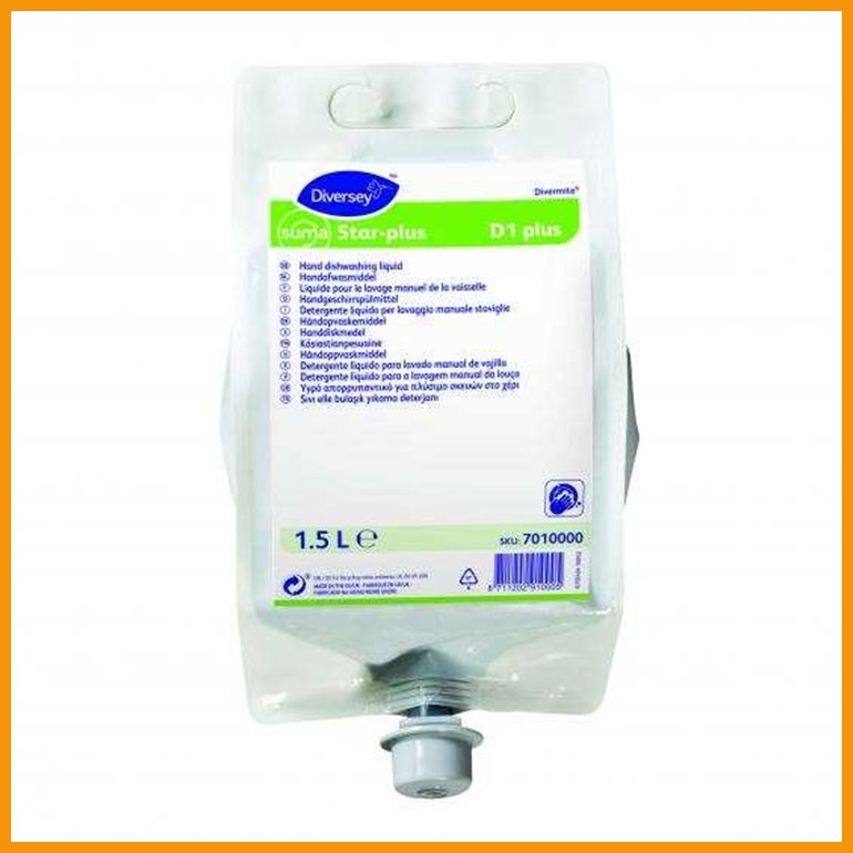 Suma Star-plus D1 plus on tehokas astianpesuaine kaikenlaisten astioiden ja keittiövälineiden käsinpesuun. Erittäin tiivistetty tuote sisältää anionisia ja ionittomia pinta-aktiivisia aineita, jotka tunkeutuvat rasvaan ja kiinni kuivuneeseen likaan irrottaen ne tehokkaasti astioista. Aine huuhtoutuu helposti eikä jätä astioihin raitoja.Pakkauskoko: 1,5 litraa