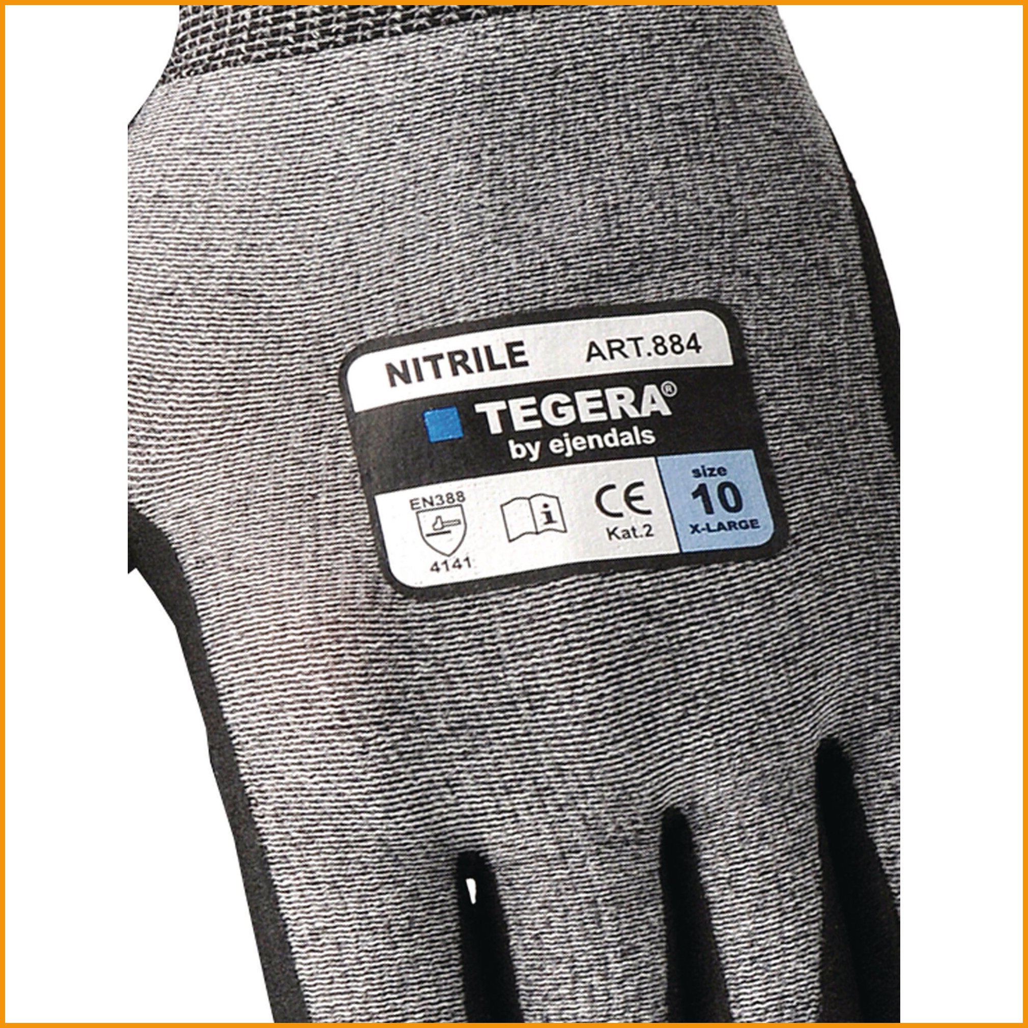 Käsine Tegera 884 on synteettinen yleiskäyttöön sopivat vettä ja öljyä hylkivä työkäsine edulliseen hintaan. Joustavassa käsineessä on pitävä nitriilipinnoite kämmenessä ja sormissa, ja hengittävä selkäosa.
