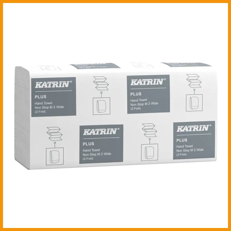 Katrin Plus Non-Stop M Leveä on Plus-laatuinen, pehmeä ja imukykyinen, tavallista leveämpi käsipyyhe. Dermatologisesti testattu tuote soveltuu lyhyeen kosketukseen elintarvikkeen kanssa. Non-Stop -ketjutaitetut arkit tulevat annostelijasta kätevästi ja hygieenisesti yksi kerrallaan.Paperi on valmistettu PEFC-sertifioidusta kuidusta. Tuottella on sekä EU Ecolabel -ympäristösertifikaatti, pohjoismainen Joutsenmerkki että kotimainen Avainlippu-tunnus. Muovipakkaus on valmistettu vähintään 30-prosenttisesti kierrätysmuovista.