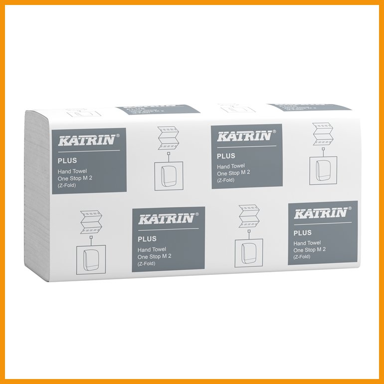 Katrin Plus One-Stop M on Plus-laatuinen käsipyyhe. Dermatologisesti testattu tuote soveltuu lyhyeen kosketukseen elintarvikkeen kanssa. One-Stop -ketjutaitetut arkit tulevat annostelijasta kätevästi ja hygieenisesti yksi kerrallaan.Paperi on valmistettu PEFC-sertifioidusta kuidusta. Tuottella on sekä EU Ecolabel -ympäristösertifikaatti, pohjoismainen Joutsenmerkki että kotimainen Avainlippu.
