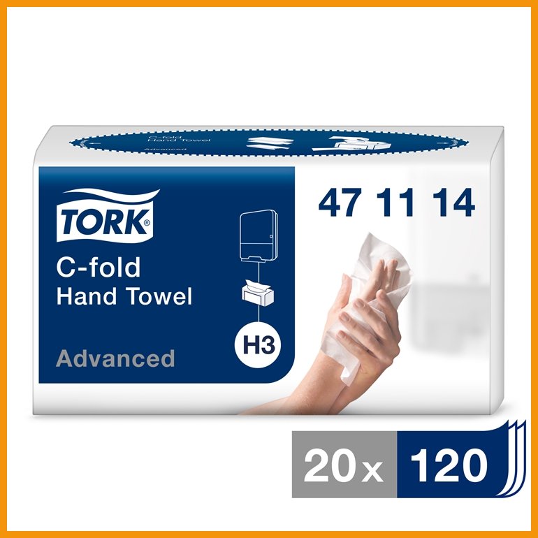 Tork C-Fold H3 on Advanced-laatuinen käsipyyhe, jolla on erinomainen tasapaino kustannusten ja toimivuuden välillä. Pehmeissä pyyhkeissä on miellyttävä kohokuviointi.Tork H3 -annostelijassa käyttäjä koskee vain ottamaansa käsipyyhkeeseen, mikä sekä vähentää jätteen määrää että parantaa hygieniaa.