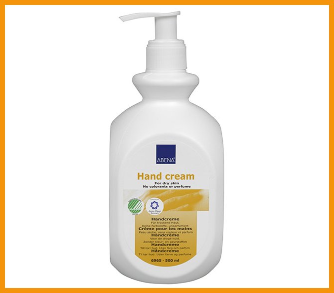 Abena Hand Cream on hoitava käsivoide, joka imeytyy nopeasti ihoon ja sopii kaikille ihotyypeille myös päivittäiseen käyttöön. Voide sisältää ihoa kosteuttavaa glyseriiniä ja runsaasti kasviöljyjä, jotka ravitsevat ihoa jättämättä sitä rasvaisen tuntuiseksi. Voiteessa on 21 % lipidejä.Tuotteella on pohjoismainen Joutsenmerkki ja Asthma Allergy Nordic -tunnus.