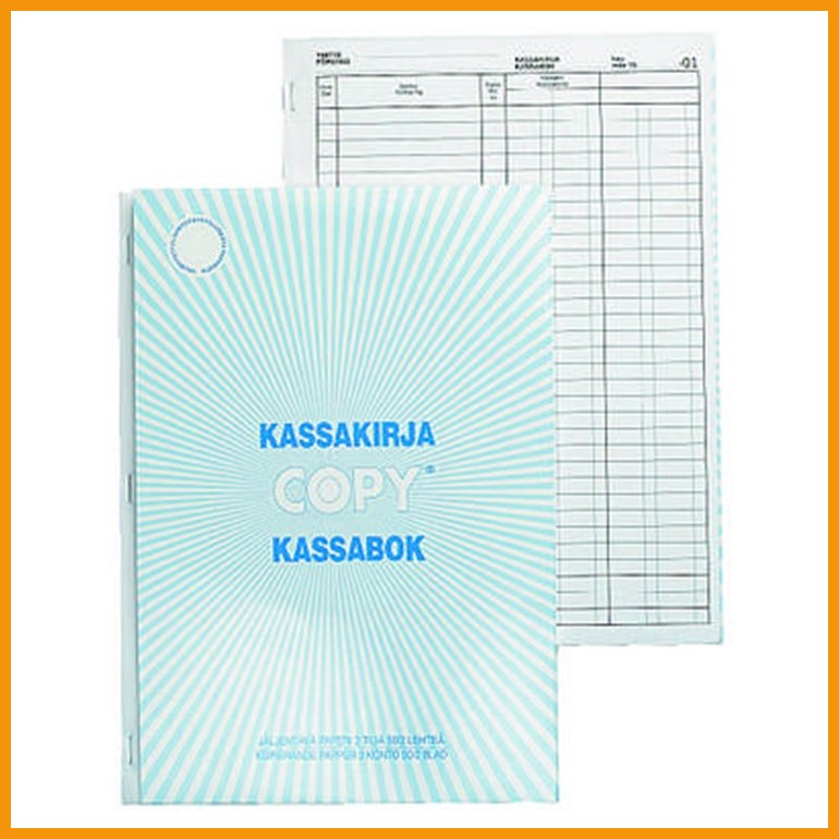 Hinta 9,90€ / kplA4-kokoinen, kaksitilinen kassakirja helpottaa kirjanpitoa huomattavasti. siinä on 2 x 50 lehteä. kassakirjassa on jäljentävät sivut. se on ympäristöystävällinen ja valmistettu suomessa. myyntierä: 1