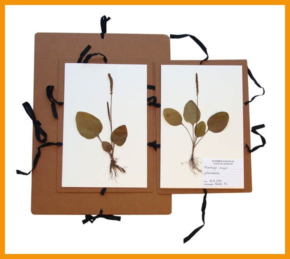 Kasvien keräilykansiossa on pitävä nauhakiinnitys ja tukevat, happovapaasta kartongista valmistetut kannet ja lehdet. Kansiossa on 20 lehteä ja etiketit.Koko: A3 (35 x 47,5 cm).