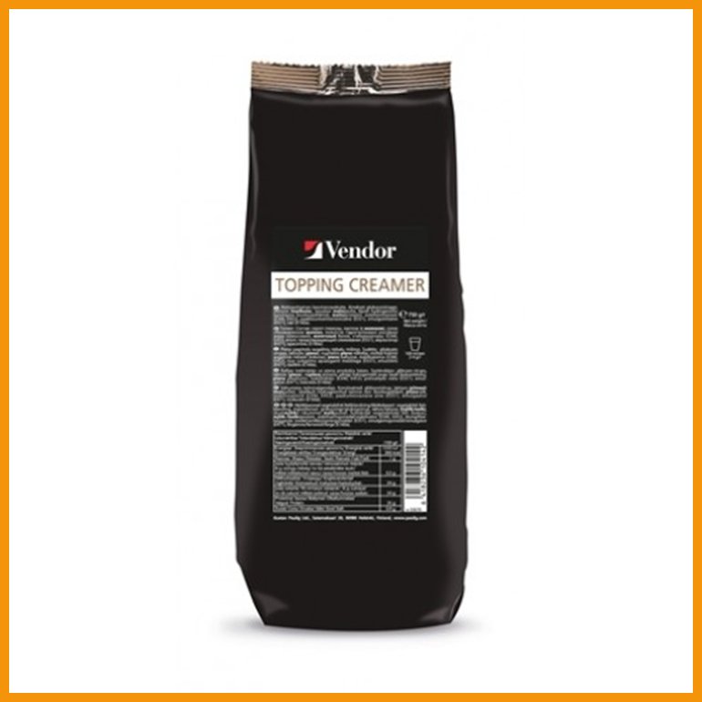 Vendor Topping Creamer on kahviautomaatteihin tarkoitettu maitopohjainen kasvirasvavalmiste, jota käytetään maitojauheen tapaan. Valmisteesta syntyy hyvänmakuinen, pehmeä ja kestävä vaahto, joka sopii hienosti esimerkiksi cappuccinoon.Paulig-tuotekoodi: 65443