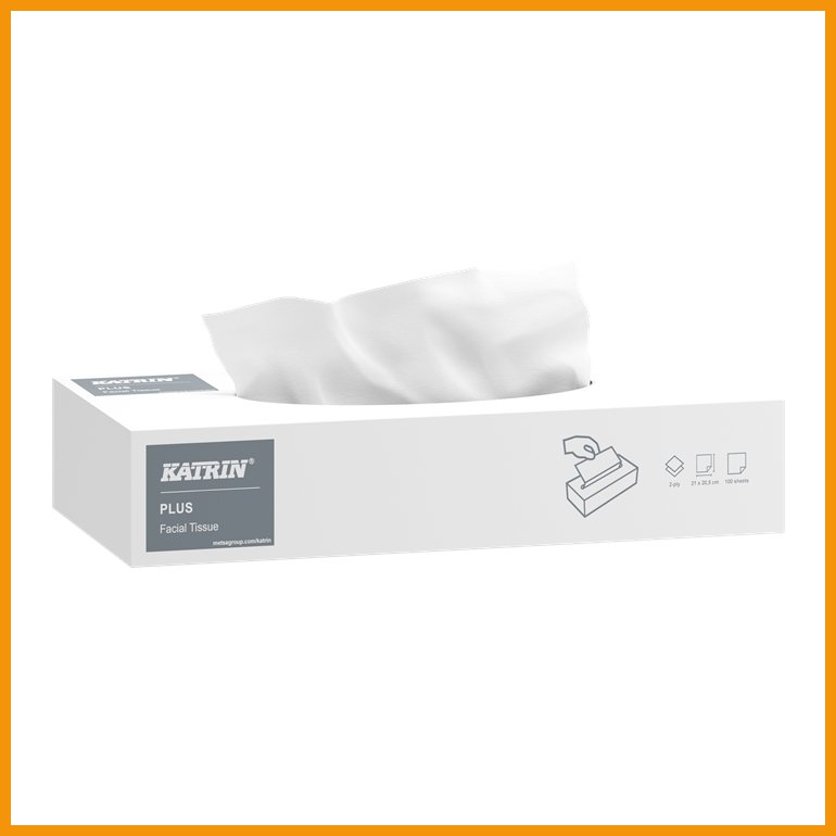 Katrin Plus Facial Towel on pehmeä ja erittäin imukykyinen kasvopaperi, joka soveltuu erinomaisesti lisäpalveluksi niin hotelliin, ravintolaan kuin toimistoonkin. Suojalaatikko annostelee hygieenisesti yhden pyyhkeen kerrallaan ja vähentää näin osaltaan kulutusta. Tuote soveltuu lyhyeen kosketukseen elintarvikkeen kanssa.Tuottella on sekä EU Ecolabel -ympäristösertifikaatti että pohjoismainen Joutsenmerkki.