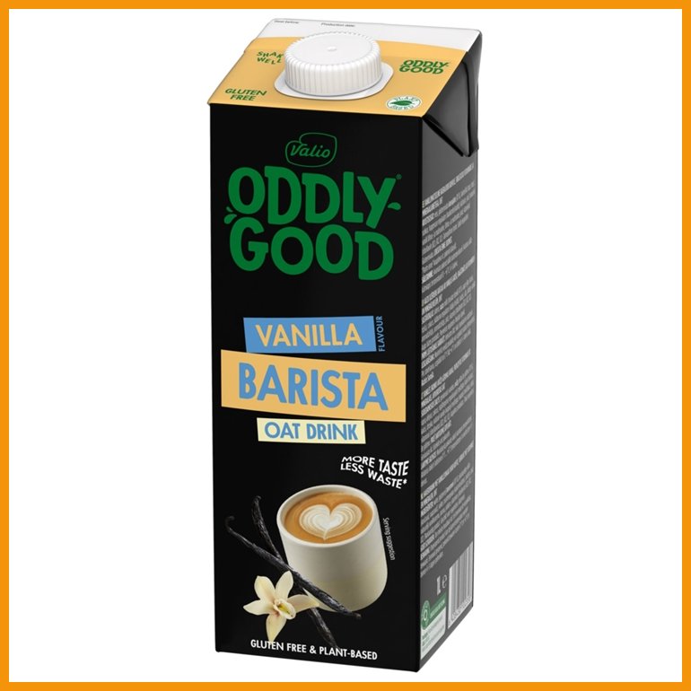 Valion Oddlygood Barista Vanilja on kotimainen, vaniljalla maustettu kaurajuoma, joka sopii niin kuumiin kuin kylmiinkin juomiin. Suutuntumaltaan kermainen, mutta täysin vegaaninen juoma soveltuu monenlaiseen ruokavalioon ja käyttötarkoitukseen. Vaahtoutuvassa ja täyteläisessä juomassa on 3 % rasvaa. UHT-käsitelty tuote säilyy avaamattomana pitkään myös huoneenlämmössä. Maku on kuitenkin parhaimmillaan viileässä säilytettynä. Oddlygood Barista valmistetaan Suomessa kotimaisesta gluteenittomasta kaurasta.Sisältö: 1 litra.
