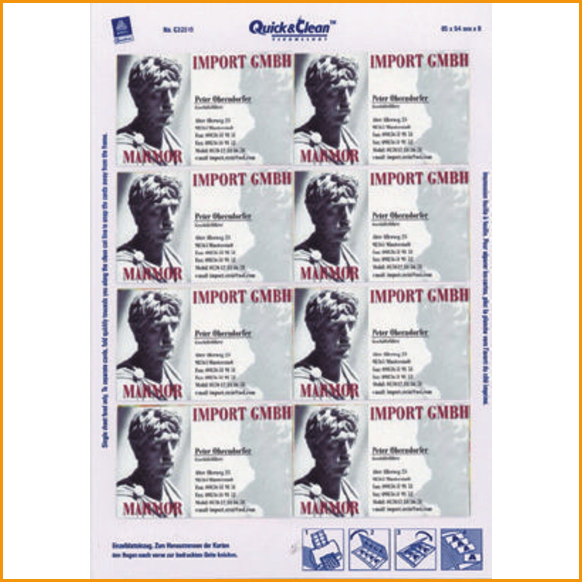 Avery käyntikortti c32016 soveltuu sekä laser- että värilasertulostukseen. satiinipaperiset kortit voidaan tulostaa molemmin puolin. averyn ainutlaatuinen quick & clean -tekniikka takaa tasaisen reunan (ei perforointia) ja ensiluokkaisen tulostuslaadun. käyntikortit valmistuvat minuuteissa ja voidaan tarvittaessa päivittää nopeasti. kortin koko: 85 x 54 mm. paperin paino: 220 g/m². yhdellä arkilla on 10 korttia ja paketissa 25 arkkia. ilmaiset tarrapohjat ja ohjelmisto tarrojen suunnitteluun osoitteesta www.avery.fi.Käyntikortit toimitetaan 250 kappaleen erissä.