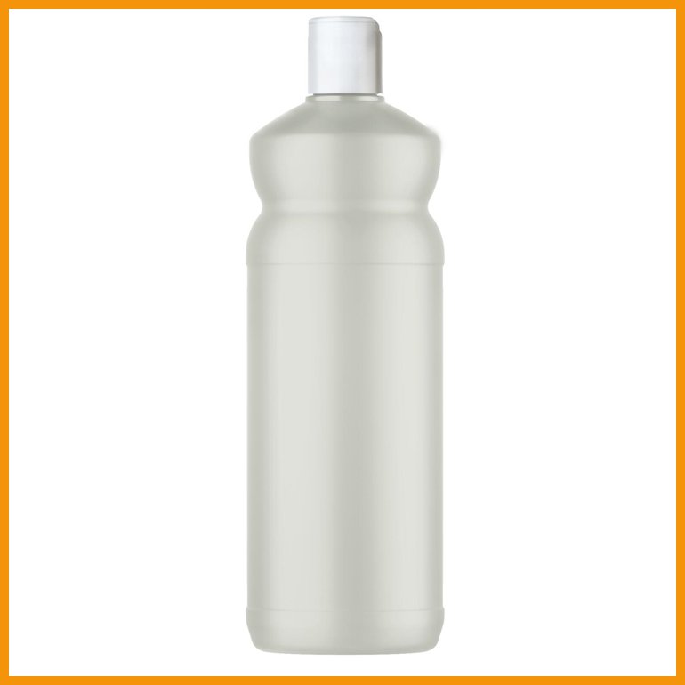 Kiillon tyhjä käyttöliuospullo keinukorkilla. Valkoisessa pullossa ei ole painatusta. Liitä pullon kylkeen käytettävän puhdistusaineen valmiiksi painettu käyttöliuosetiketti tai blanko etiketti, johon kirjoitat tarvittavat tiedot.