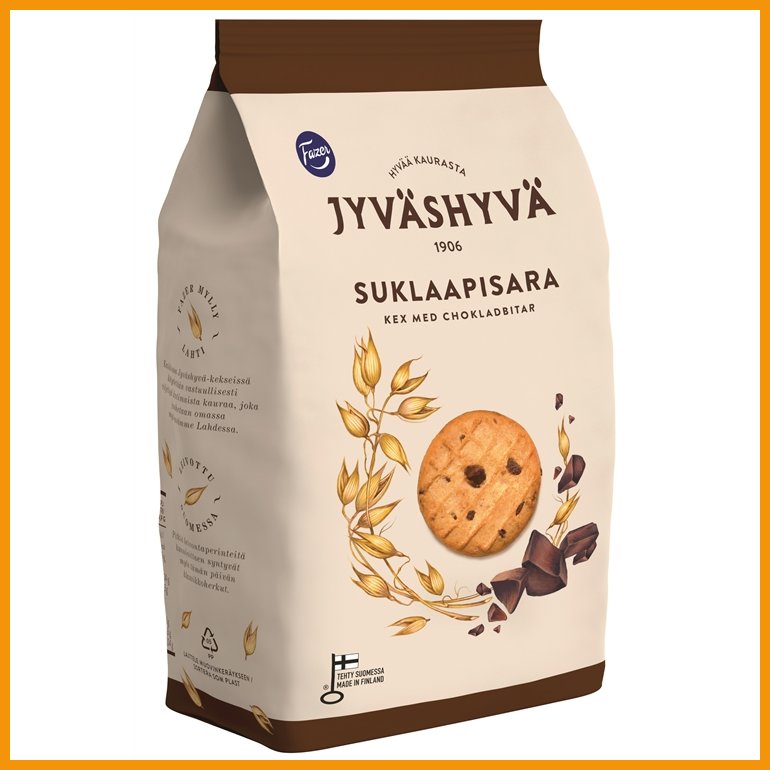 Keksi Fazer Jyväshyvä Suklaapisara 350 g on laadukas kahviotuote, jonka verkkokauppatilauksen toimitus perille kestää 1-2 päivää. Tiedäthän, että toimitus on ilmainen yli 140 € hintaisille verkkokauppa ostoksille! Meiltä voit tilata laskulla ja ilman rekisteröitymistä.