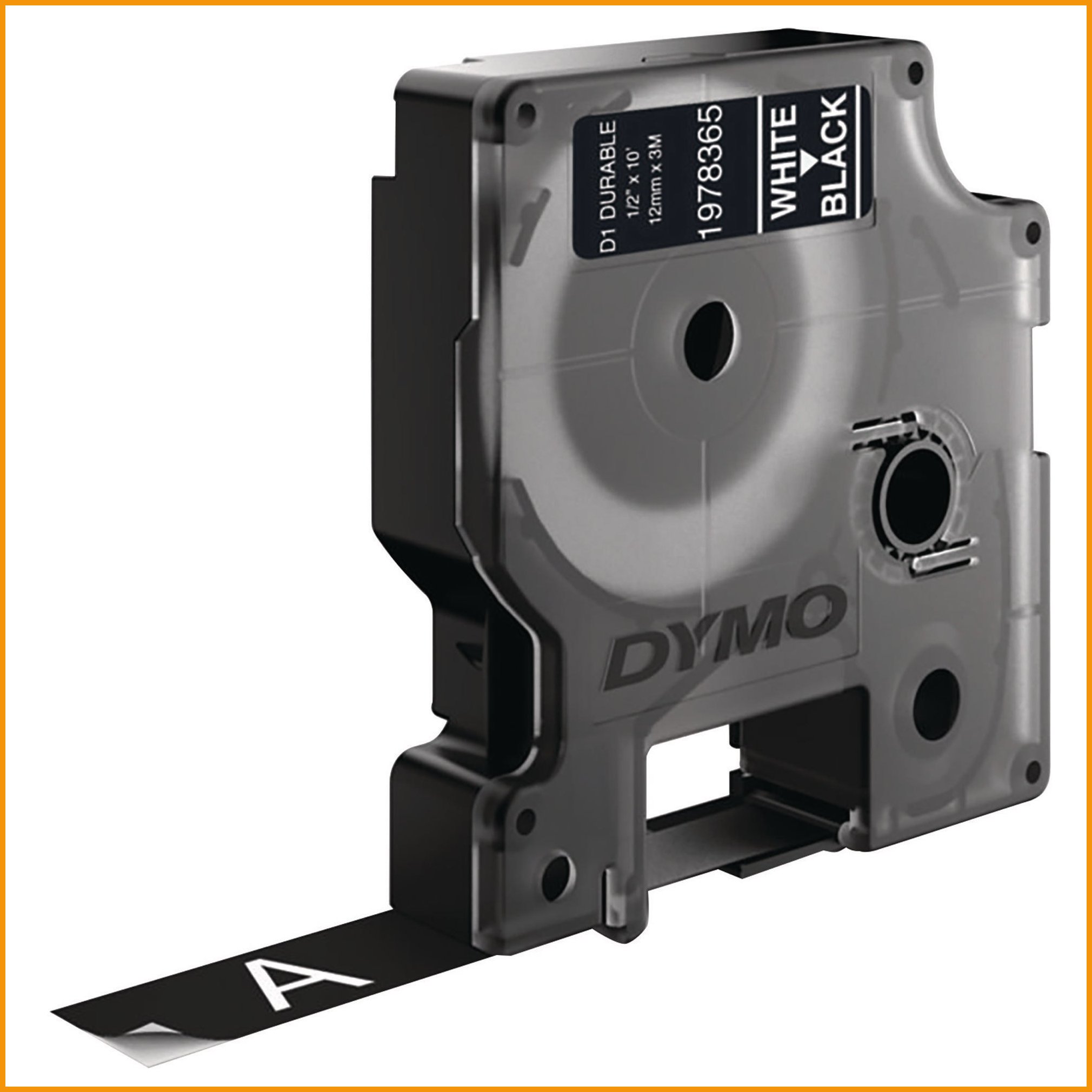 Kestotarra Nauha Dymo durable d1 12mm x 5,5m musta/valkoinen