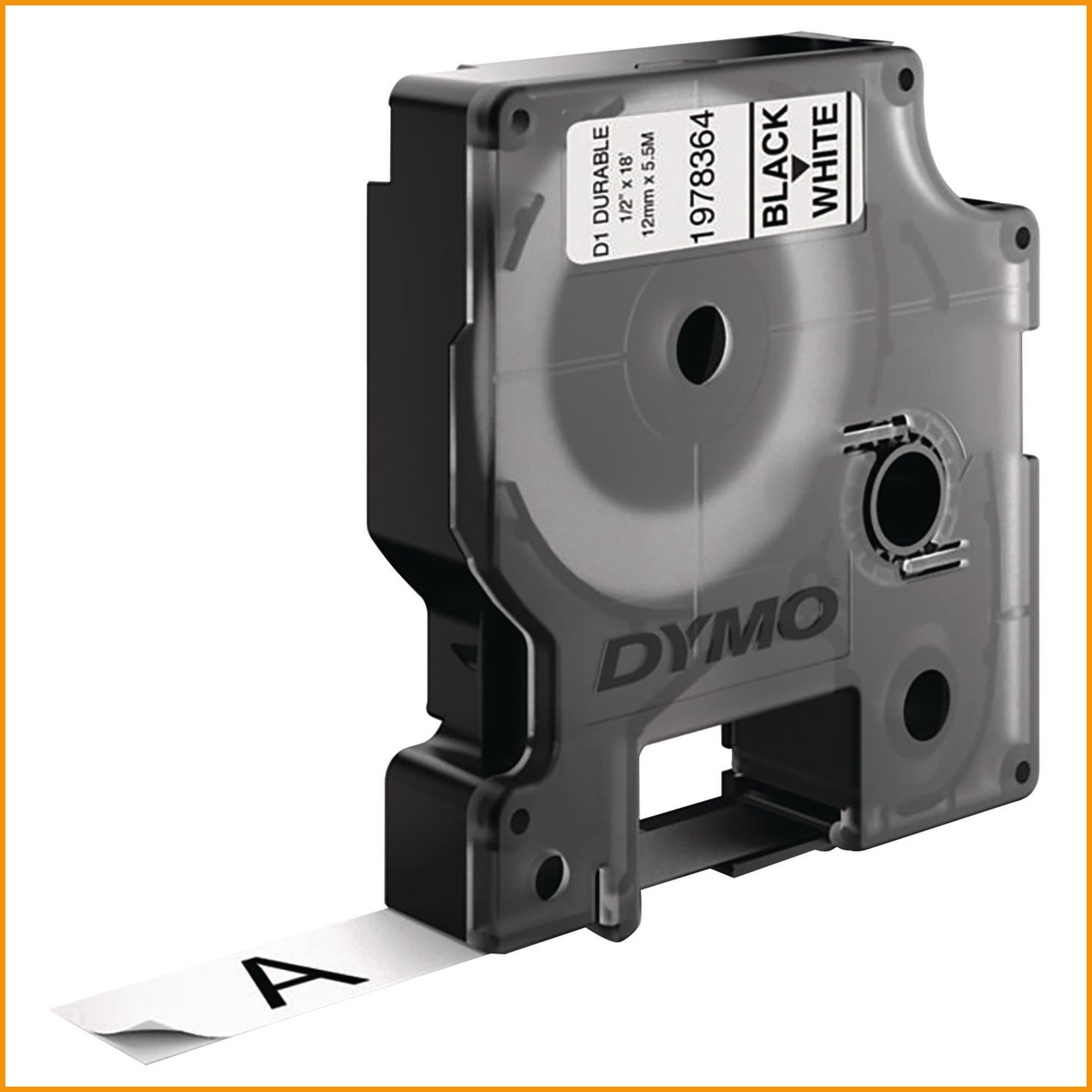Kestotarra Nauha Dymo durable d1 12mm x 3m musta/oranssi