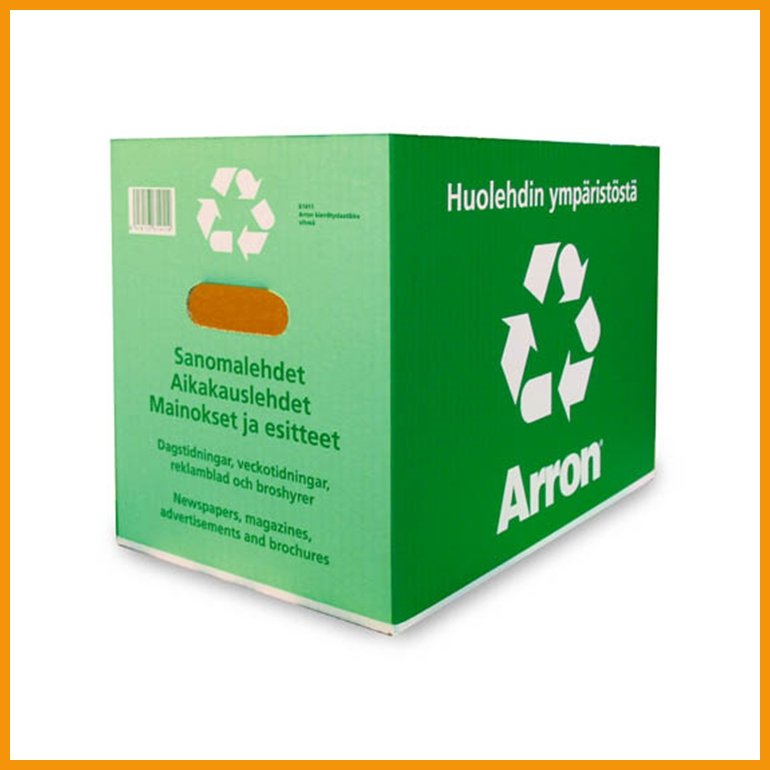 Arron-kierrätyslaatikko helpottaa materiaalien kierrättämistä. Tämä laatikko on tarkoitettu paperille, lehdille, mainoksille ja pahville.