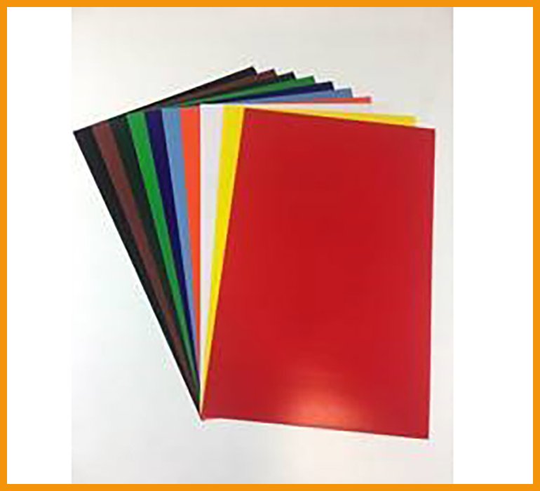 Paketissa on 10 vahvan värin lajitelma, yksi arkki kutakin väriä.