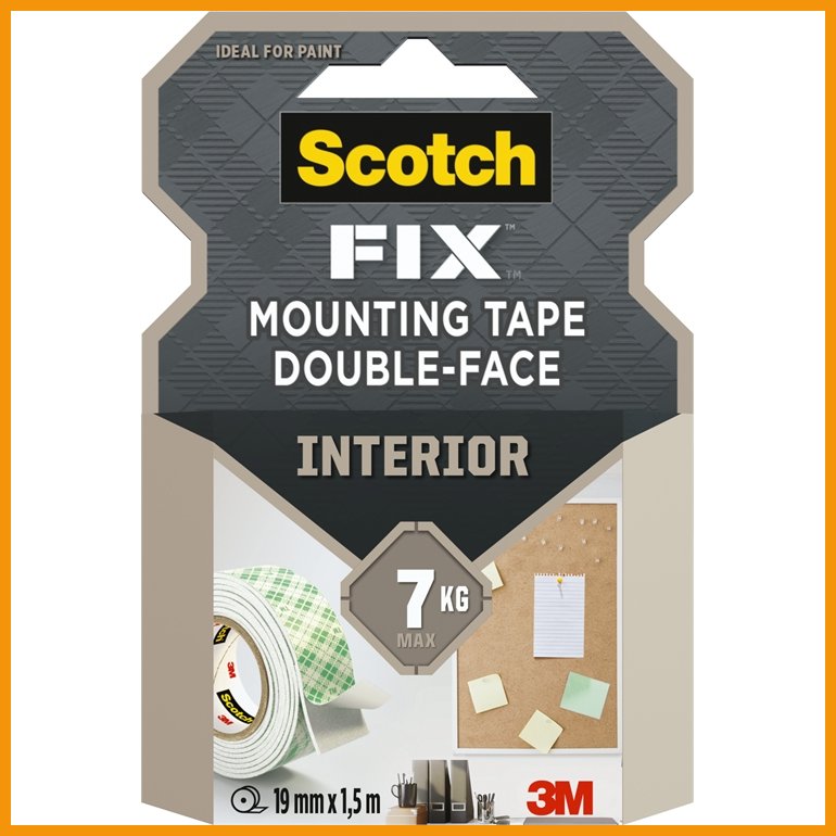 Scotch-FIX Interior on sisäkäyttöön tarkoitettu kaksipuolinen kiinnitysteippi, jolla kiinnität raskaitakin esineitä. Teippi sopii erinomaisesti mm. maalatulle kipsilevylle, päällystetylle puulle, metallille, akryylille, laatalle ja lasille.Teippi kestää 0 °C - 40 °C lämpötiloja ja soveltuu jopa 7 kg painoisten esineiden, kuten avainnaulakoiden, säilytyslokeroiden ja taulujen kiinnittämiseen.
