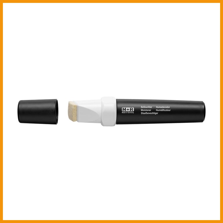 Möbius+Ruppert-kirjeenkostuttaja on näppärä apuväline kirjekuoren liimanauhan kostuttamiseen. Kynänmuotoisessa kostuttajassa on viisto huopakärki, jolla kuoren saa kostutettua siististi ja tarkasti. Kostuttajassa on sitä kuivumiselta suojaava korkki.Kirjeenkostuttaja Möbius+Ruppert kynämalli on erinomainen toimistotarvike, jonka verkkokauppatilauksen toimitus perille kestää 1-2 päivää. Huomaa, että toimitus on ilmainen yli 140 € hintaisille verkkokauppa ostoksille! Meiltä voit tilata laskulla ja ilman rekisteröitymistä.