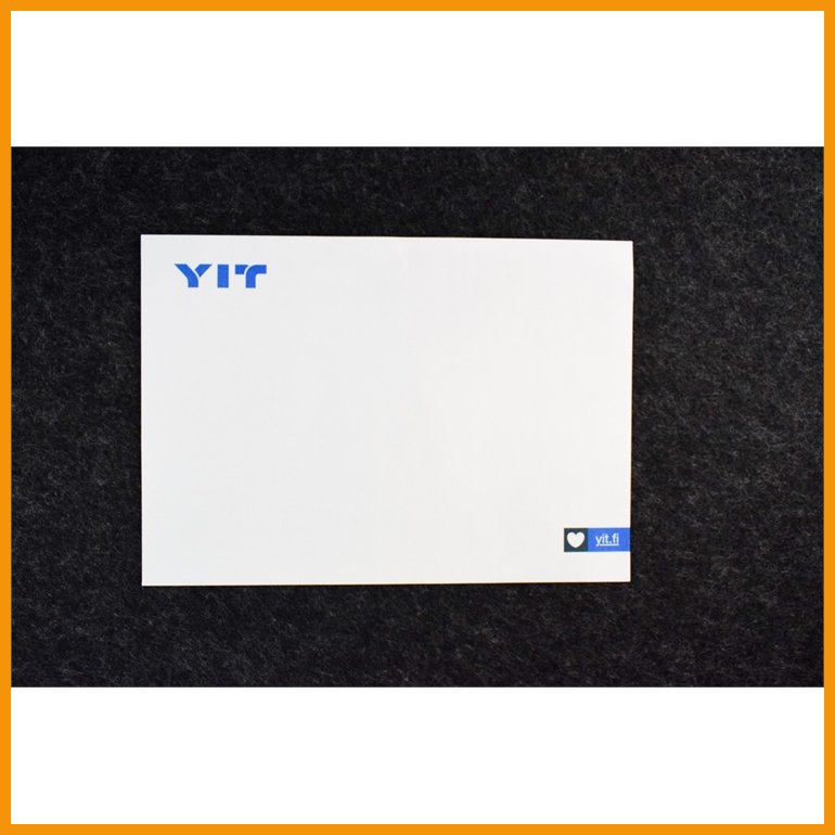 Kirjekuori C5/500 YIT on upea postitustuote, jonka toimituksen kesto on verkkokaupasta tilattuna 1-2 päivää. Tiedäthän, että hinnaltaan yli 140 € verkkokauppatilaus toimitetaan aina ilmaiseksi! Meiltä voit tilata laskulla ja ilman rekisteröitymistä.