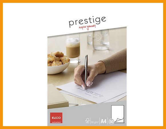 ELCO Prestige -kirjepaperilehtiön laadukkaiden liuskojen mukana tulevat imupaperit ja irrallinen apuviivasto kirjoittamisen tueksi.Tuote on valmistettu FSC-sertifioidusta materiaalista.