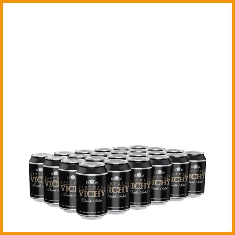 Hartwallin Vichy Double Salted on runsaasti hiilihapotettu ja tuplasti tavallista suolaisempi kivennäisvesi. Janojuoma sisältää runsaasti suolaa ja kivennäisaineita (natriumbikarbonaatti, kaliumbikarbonaatti, magnesiumkloridi ja kalsiumkloridi), muttei lainkaan kaloreita tai lisäaineita.Pakkauksessa on 24 tölkkiä á 0,33 litraa. Hinta ei sisällä panttia.