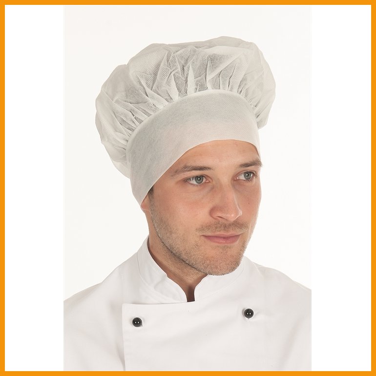 Valkoinen, hikinauhalla varustettu hengittävä kokinhattu.Halkaisija: 29 cm