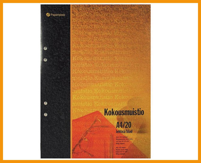 Hyvät toimistotarvikkeet yrityksille, yhdistyksille, valtion ja kuntien toimipaikoille. Kotimainen, edullinen nettikauppa on helppokäyttöinen ja kaikki kokousmuistiot toimitetaan halpaan hintaan nopeasti. Helppoa – lisää vain konttoritarvikkeet rekisteröitymättä koriin ja lähetä!Tilaa 46582 kokousmuistio netistä!