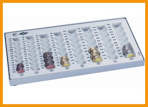 Wedon kolikkotelineessä on omat sarakkeet kaikille kahdeksalle eurokolikkotyypille. Teline on valmistettu tukevasta muovista, pohjalevy on metallia ja pohjassa on telineen liukumista ehkäisevät kumitassut. Sarakkeisiin on painettu kassan laskemista helpottavat välisummat.Mitat: 330 x 184 x 33 mm