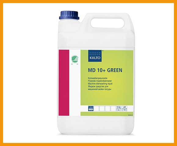 Kiilto Pro MD 10+ Green on tehokkaasti rasvaa emulgoiva ja sekä tärkkelystä että valkuaista hajottava konetiskiaine, joka ei sisällä lainkaan klooriyhdisteitä. Runsaasti kompleksinmuodostajia sisältävä tuote pitää astiat ja koneen puhtaina estämällä tehokkaasti kalkin muodostumista. Keskikoviin ja koviin vesiin soveltuva aine annostellaan automaattisella pesuaineen annostelupumpulla.Tuotteella on pohjoismainen Joutsenmerkki.
