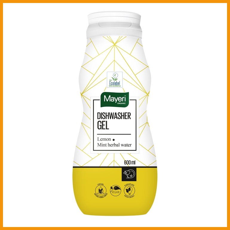 Mayeri Organic Lime-Mint on konetiskiaine, joka liuottaa tehokkaasti rasvaa ja puhdistaa astiat perusteellisesti jo 50 °C lämpötilassa. Geelimäinen aine sisältää pesuaineen lisäksi huuhtelukirkasteen, vedenpehmentimen, lasisuojan ja suolaa. Kiiltävät astiat ilman vesitahroja tai pisarajälkiä. Aineessa on miellyttävä sitruunan ja mintun tuoksu.Tuote on valmistettu uusiutuvan energian avulla minttu-yrttiveteen 95-prosenttisesti luonnon omista ainesosista. Vegaanisella tuotteella on EU Ecolabel -ympäristösertifikaatti.