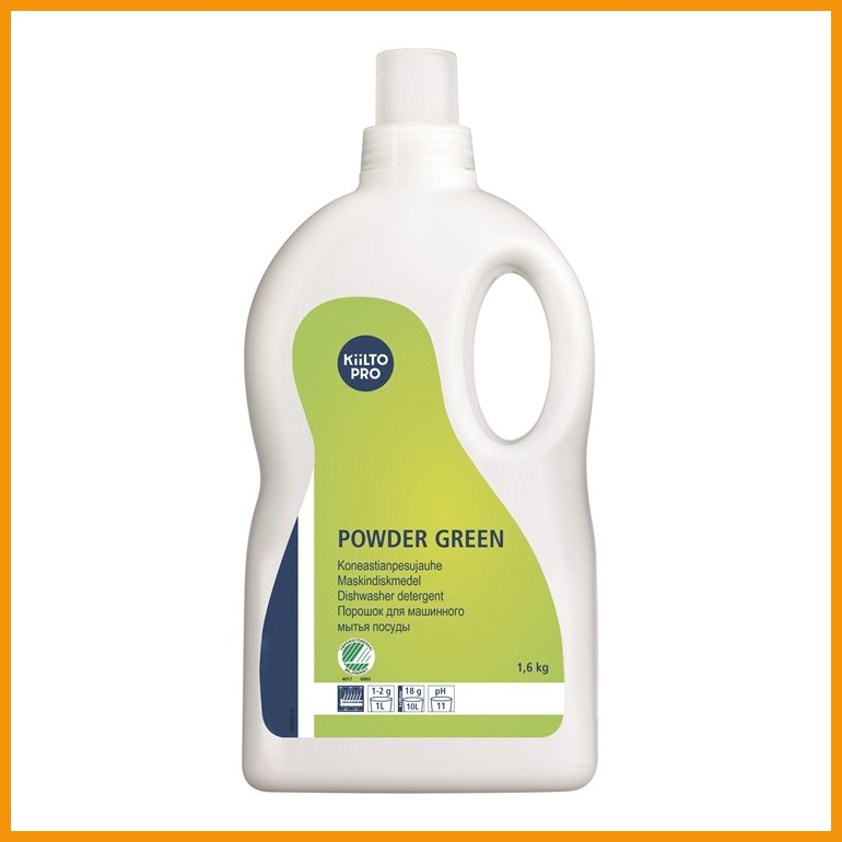 Kiilto Pro Powder Green on jauhemainen konetiskiaine astioiden koneelliseen pesuun. Tuote soveltuu myös laboratoriovälineiden pesemiseen ja nopeissa suurtalouskoneissa käytettäväksi. Pesujauhe emulgoi erittäin hyvin rasvaa ja valkuaista ja ehkäisee kalkkisaostumien syntymistä. Kovissa vesissä vedenpehmennyssuolan käyttäminen voi olla tarpeen. Ei sisällä fosfaattia.Tuotteella on pohjoismainen Joutsenmerkki.