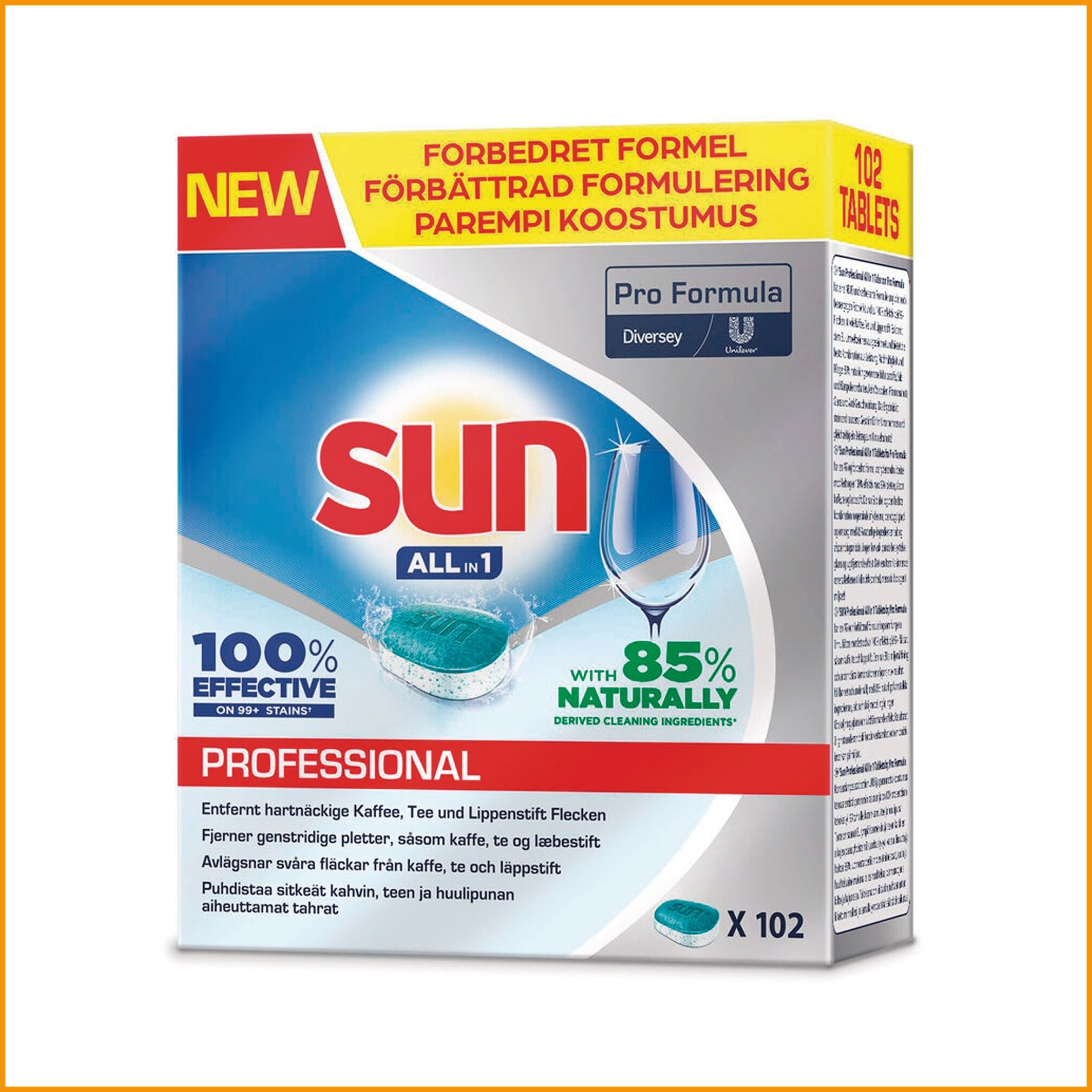 Konetiskitabletti Sun pro all-in-1 102kpl on erinomainen tiskinpesuaine, jonka verkkokauppatilauksen toimitus perille kestää 1-2 päivää.