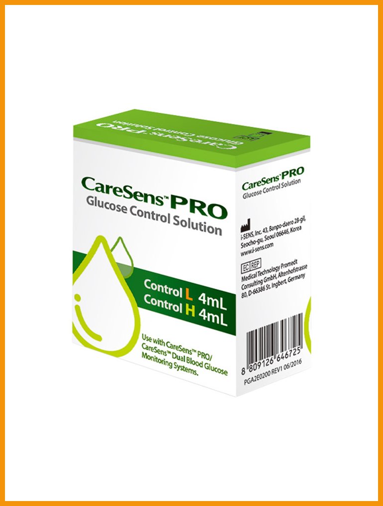 CareSens Pro -kontrolliliuosta käytetään verensokerimittarien ja vastaavien testiliuskojen toiminnan tarkistamiseen. Valmistaja suosittelee kontrollitarkastusta aina uutta liuskapurkkia avattaessa. Tuote on CE 0123 -merkitty.Pakkauksen sisältö: 4 ml L-liuos ja 4 ml H-liuos.