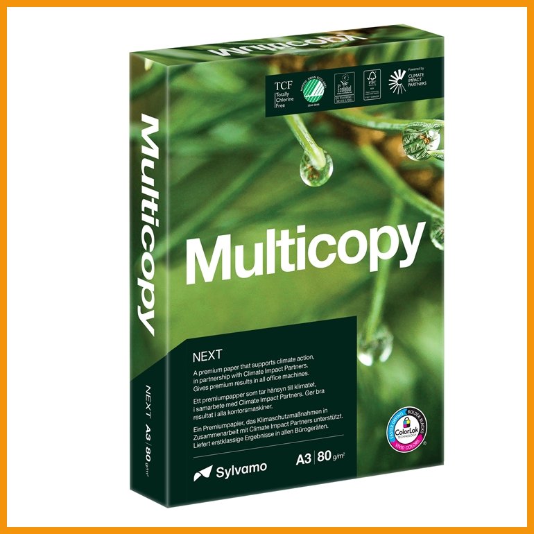 Multicopy Next on monikäyttöinen ja erittäin sileä kopiopaperi, joka toistaa ColorLok-teknologian vaatimusten mukaisesti niin laser- kuin mustesuihkutulostimienkin värit kirkkaina ja mustan sävyt syvinä. Premium-laatuisella paperilla on hyvä ajettavuus nopeissa toimistolaitteissa ja se sopii volyymikäyttöön.Pölyämätön ja arkistokelpoinen paperi sopii myös kaksipuoleiseen tulostukseen.