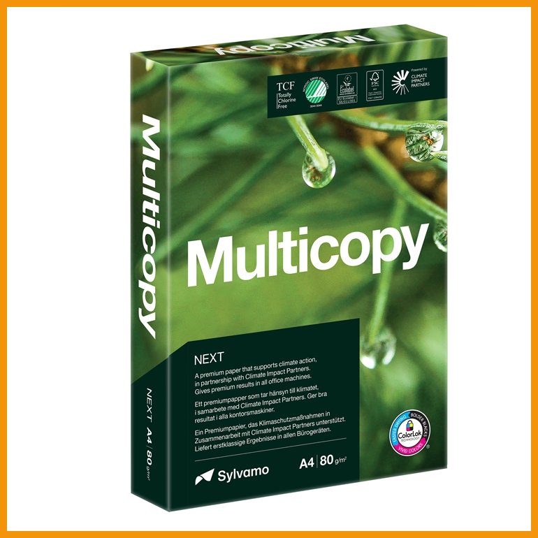 Multicopy Next on monikäyttöinen ja erittäin sileä kopiopaperi, joka toistaa ColorLok-teknologian vaatimusten mukaisesti niin laser- kuin mustesuihkutulostimienkin värit kirkkaina ja mustan sävyt syvinä. Premium-laatuisella paperilla on hyvä ajettavuus nopeissa toimistolaitteissa ja se sopii volyymikäyttöön.Pölyämätön ja arkistokelpoinen paperi sopii myös kaksipuoleiseen tulostukseen.