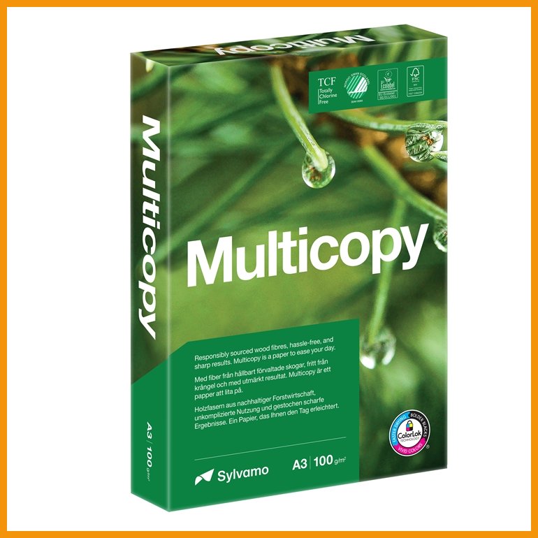 Hinta10,73€ / 500 kplMulticopy on kirkasvalkoinen monikäyttöpaperi joka sopii kaikkiin toimistolaitteisiin. sillä on erinomainen syöttöluotettavuus ja lopputulos erinomainen sekä väri- että mustavalkotulostuksessa. a4 on käytetyin paperikoko ja standardi monissa toimistoissa sekä kouluympäristöissä. arkkikoko: ...