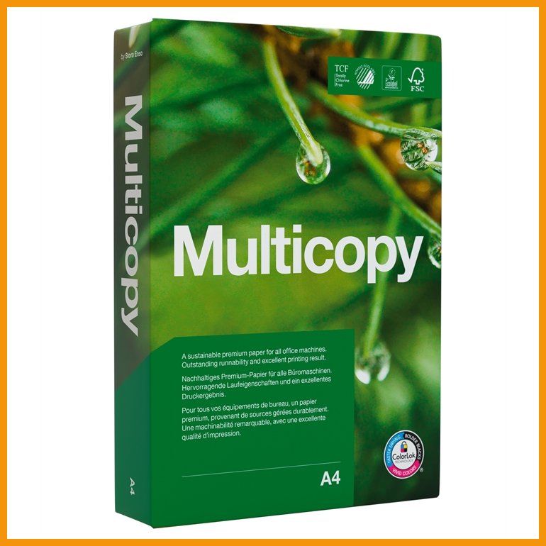 Multicopy Original on monikäyttöinen kirkkaanvalkoinen kopiopaperi. Erittäin sileä paperi toistaa ColorLok-teknologian vaatimusten mukaisesti niin laser- kuin mustesuihkutulostimienkin värit kirkkaina ja mustan sävyt syvinä.Pölyämätön, arkistokelpoinen ja erittäin korkean opasiteetin paperi sopii erinomaisesti myös kaksipuoleiseen tulostukseen.