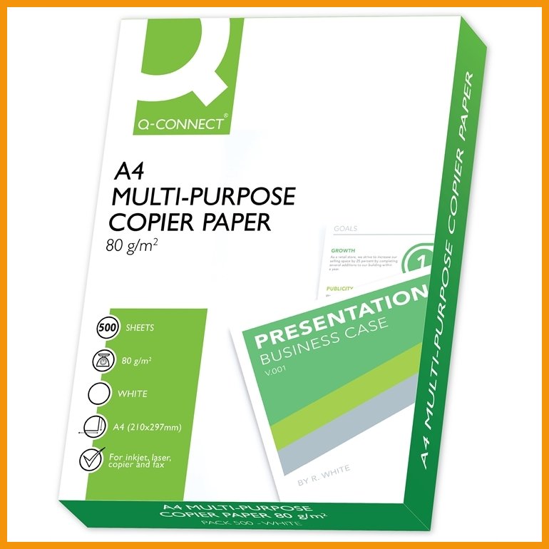 Q-CONNECTin Suomessa valmistettu ja arkistokelpoinen kopiopaperi soveltuu kaikenlaiseen kopiointiin, laser- ja mustesuihkutulostukseen. Tuote on pakattu muovittomaan kääreeseen.PEFC-sertifioidusta kuidusta valmistetulla paperilla on EU Ecolabel -ympäristösertifikaatti.