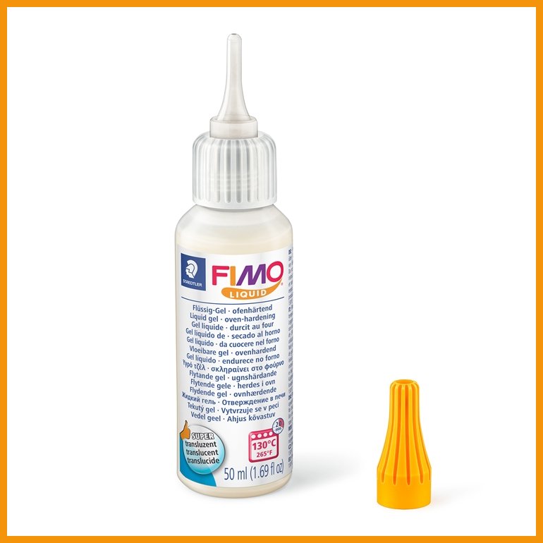 Staedtler FIMO liquid -koristegeeliä voidaan käyttää esimerkiksi sauma-aineena sekä erilaisten muovailuvahojen ja -massojen koristeluun, kuten kohokuvioiden luomiseen. Kätevä annostelukärki auttaa kuvioiden teossa, ja läpikuultava ja paksu geeli on erittäin joustavaa myös kovetuttuaan. Geeliin voidaan sekoittaa värejä ja sillä onnistuvat monet eri väritekniikat. Tuotetta voidaan käyttää myös uuninkestävissä silikonimuoteissa. Geeli kovettuu 130 °C lämpötilassa noin 30 minuuttia.Pakkauskoko: 50 ml.