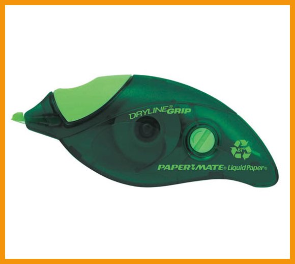 Paper Mate Dryline Grip on vähintään 65-prosenttisesti kierrätysmateriaalista valmistettu korjauslaite tukevan otteen antavalla kumisella otealueella. Korjausrollerilla teet nopeasti korjauksia tai peität tietoja dokumenteista. Korjausnauha ei erotu valokopiosta ja sen pintaan voi kirjoittaa.Mitat: 5 mm x 8,5 m.