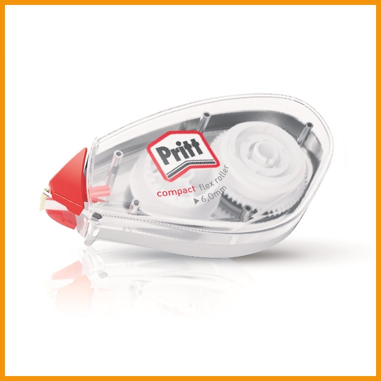 Pritt Correction Roller Compact Flex on ergonomisesti muotoiltu korjauslaite, jolla teet siististi korjauksia tai peität tietoja dokumenteista. Rollerissa on joustava kärki, automaattinen kelausmekanismi ja ylimääräistä suojaa antava kiristysruuvi.Tuote on valmistettu vähintään 50-prosenttisesti kierrätysmuovista.