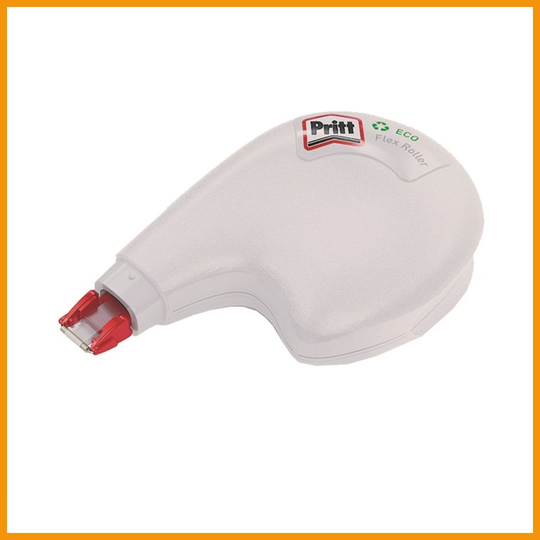 Pritt Correction Roller Eco Flex on ergonomisesti muotoiltu korjauslaite, jolla teet siististi korjauksia tai peität tietoja dokumenteista. Sivuttain käytettävässä rollerissa on joustava kaksitoiminen kärki, jolla korjaat näppärästi sekä yksittäisiä kirjaimia että kokonaisia lauseita.Tuotteen runko on valmistettu 100-prosenttisesti kierrätysmuovista.