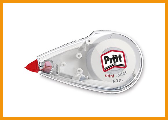 Pritt Mini Roller on pienikokoinen korjauslaite, jolla teet siististi korjauksia tai peität tietoja dokumenteista. Korjausjälki ei näy valokopioissa. Rollerissa on patentoitu joustokärki, jolla on miellyttävä työskennellä. Liuotinaineeton korjausnauha kuivuu välittömästi ja sen päälle voi kirjoittaa heti.Runko on valmistettu vähintään 50-prosenttisesti kierrätysmuovista.